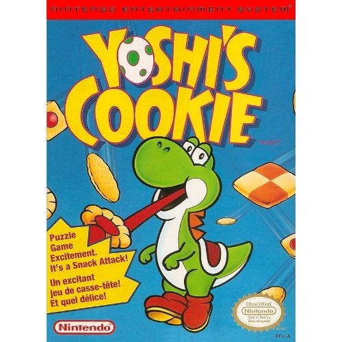 Cookie Chaos for Mario and Yoshi! Mario and Yoshi are filling in at the Cookie Factory, and they need your help! Fresh baked cookies roll out of the ovens. It's up to Mario to sort and stack'em before they pile too high! Line up a row of the same kind of cookies either vertically or horizontally, and they vanish! Clear the screen to move on to a new level of cookie chaos.